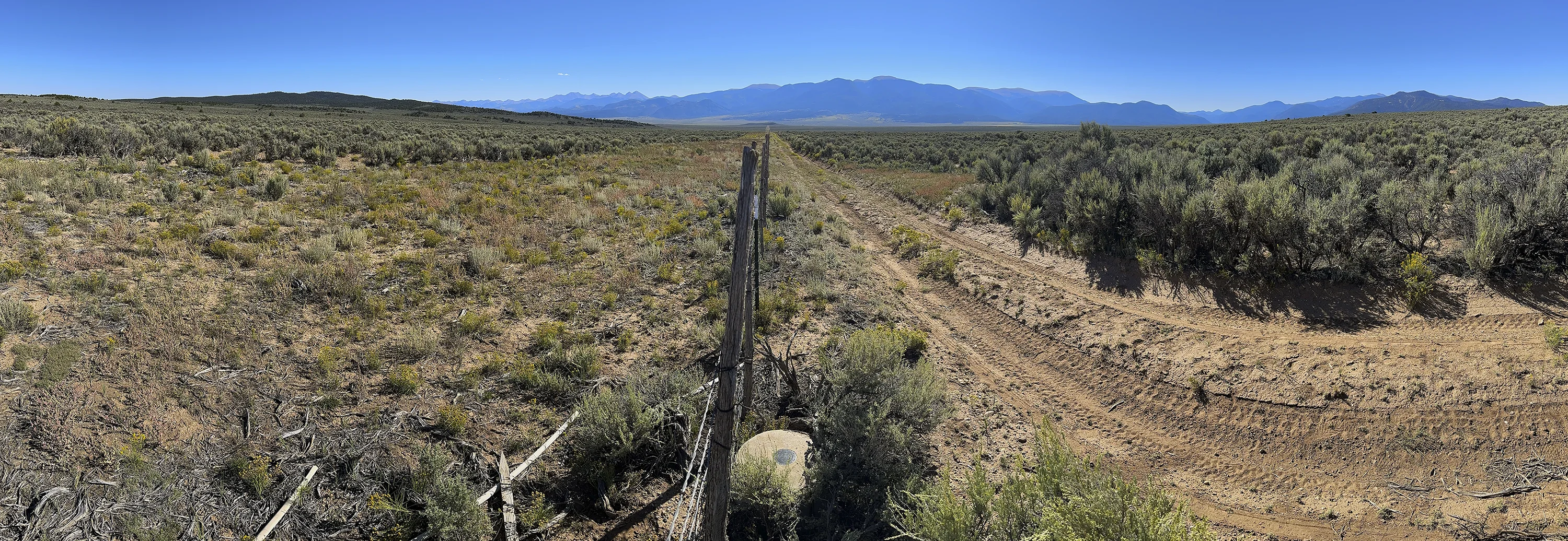 Looking east at CO-NM Mile 135 at 36˚ 59′ 45.4776″ N, 105˚ 29′ 1.4172″ W