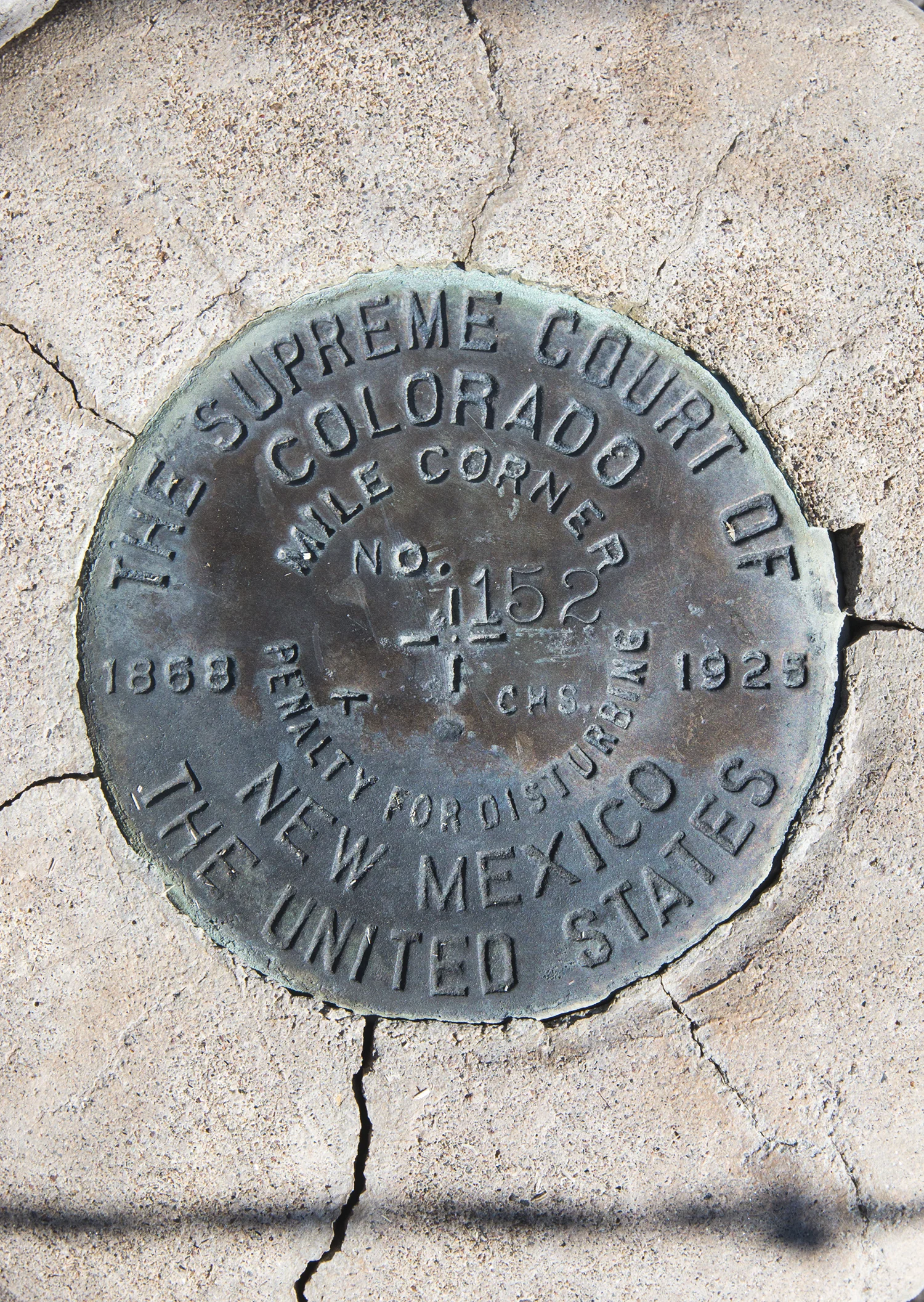 On top of Mile 152’s hill there’s a rich view east: In the far distance, in pale blue, lie the Sangre de Cristo mountains. Ute Mountain, a shield volcano, arcs gently a few miles south of the line; just to the north, a narrow brown wiggle marks the Rio Grande in its shallow canyon; also north of the line, beyond the river, spreads Sky Valley Ranch. Hard to see in this image, there’s a grid of Nazca lines marking future streets, complete with street signs, a plan for an immense development that remains frozen on its starting blocks.
