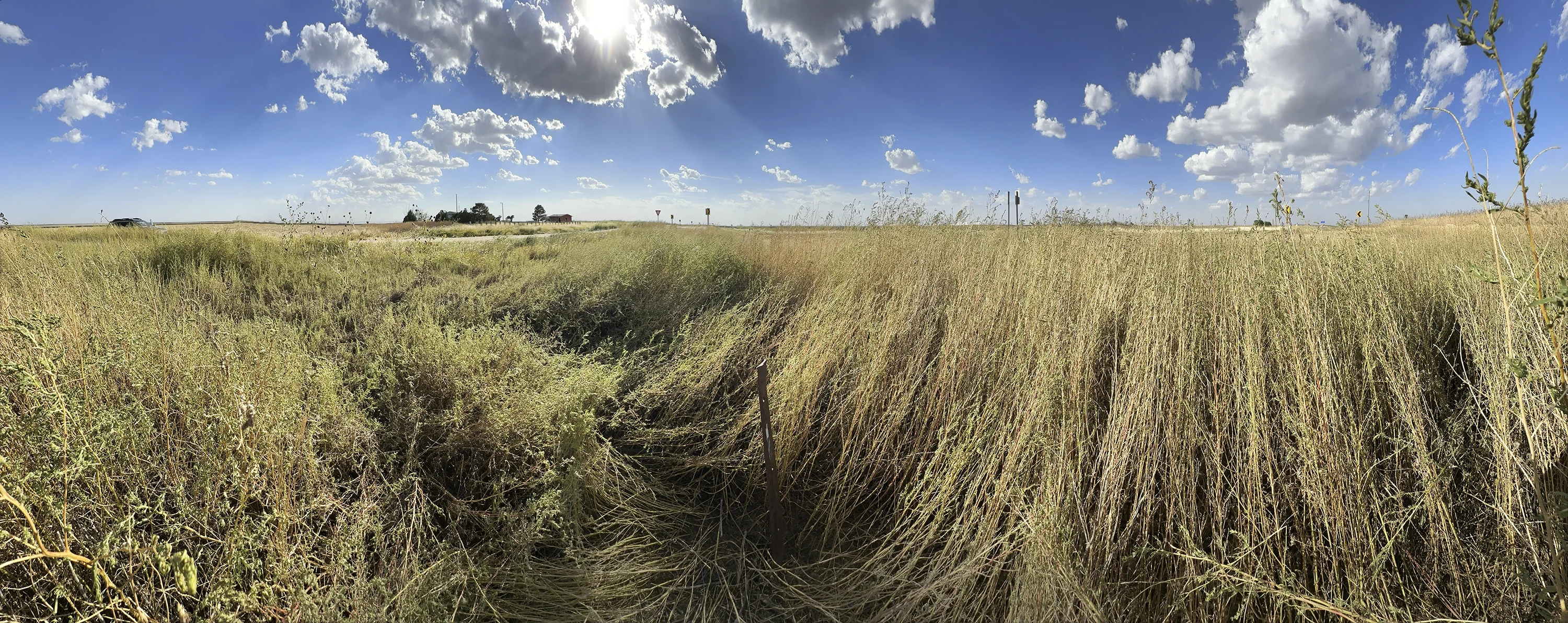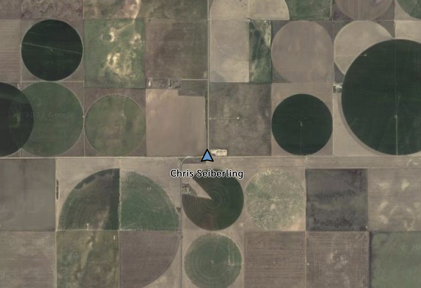 Here we’re just west of the 100th meridian, defined by John Wesley Powell as the eastern edge of the arid west. In the early 19th century we would be standing in the borderland of what Zebulon Pike (of Pike’s Peak) in 1806 called “the Great American Desert.” Below us lies the Ogallala aquifer, an immense reservoir that extends from the Texas panhandle to the Nebraska Sandhills, that’s being sucked out at a rate of nearly 5 1/2 million acre-feet per year. 1/4 mile pivot irrigators dominate the landscape here.