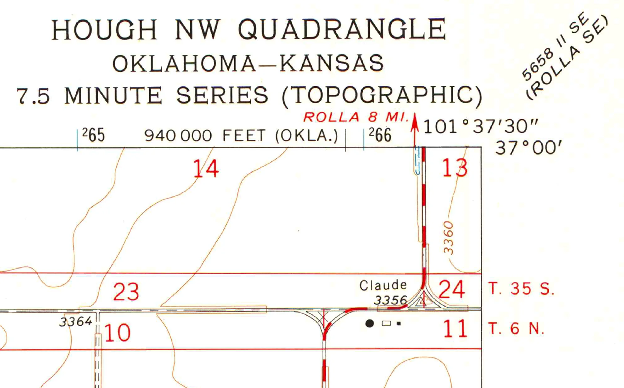 The map clearly indicates we’d find a survey monument labeled Claude in the middle of the intersection of two dusty roads, eight miles south of Rolla, Kansas, but we found nothing more exciting than a rusting steel fencepost in the triangular intersection’s tallgrass, a third of a mile south of the 37th parallel.