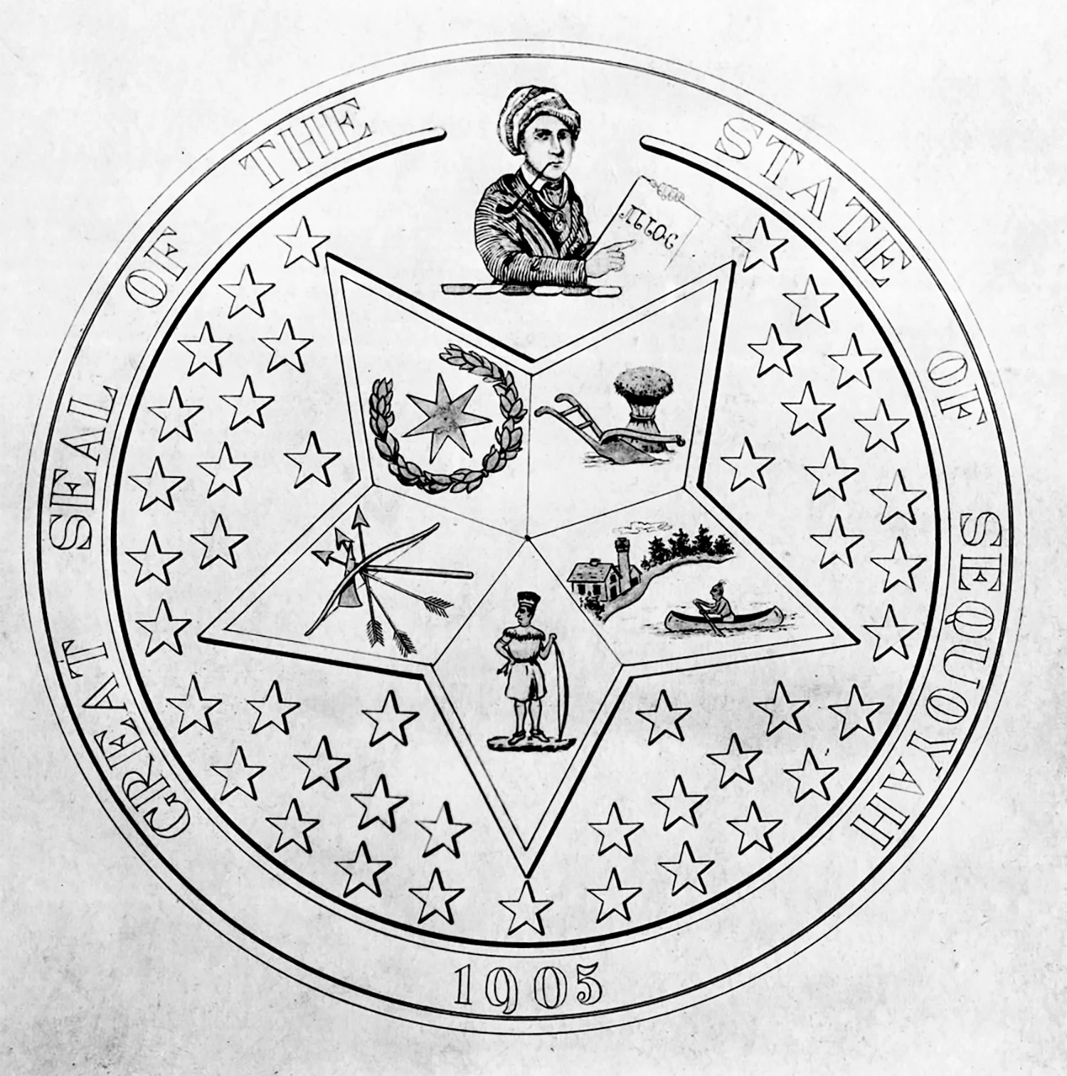 7 “State Seal Incorporates Territory, 5 Tribes’ Seals,” The Oklahoman, November 13, 1982. https://www.oklahoman.com/story/news/1982/11/13/state-seal-incorporates-territory-5-tribes-seals/62867072007/