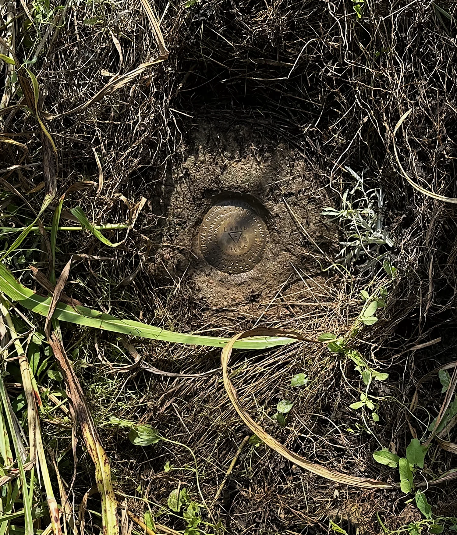 The Lewis monument swathed in decaying prairie grasses